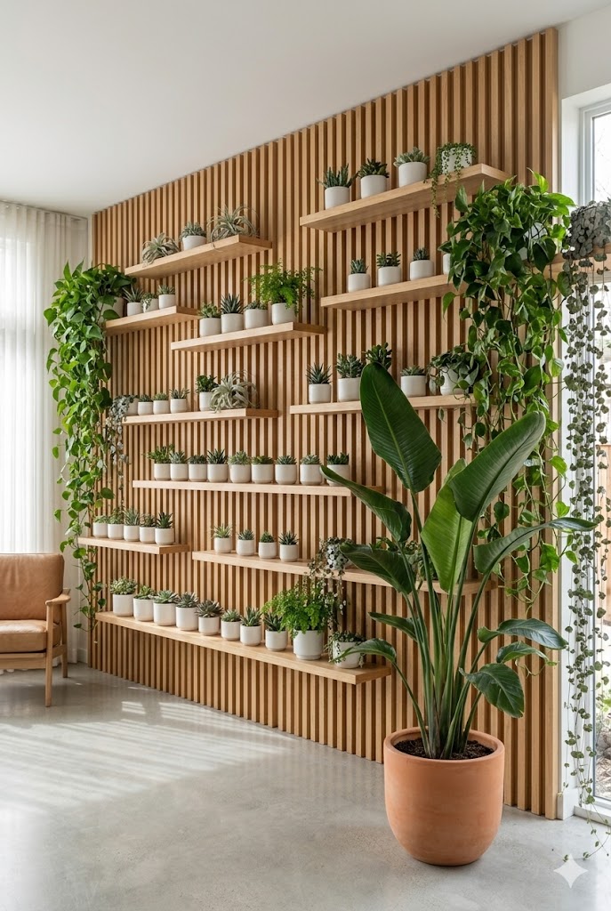Indoor plants are more than just decor—they’re mood-boosters, air-purifiers, and sources of creative inspiration. But finding the perfect way to display them, especially in a limited space, can be a challenge. Enter the vertical garden: the slatted-wall shelf unit. If you’ve been on Pinterest lately, you’ve likely seen this stunning design concept trending for its unique, modern-minimalist aesthetic and space-saving efficiency.
